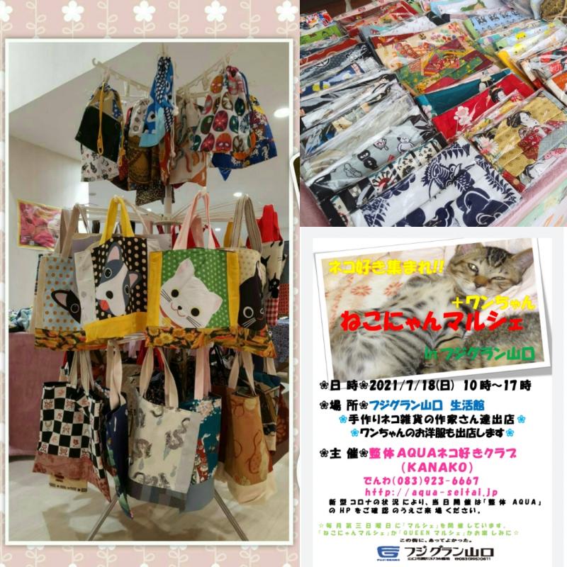 7/18(日)☆ねこにゃんマルシェ+ワン☆~出店者様紹介『こっとんはうす』さん/フジグラン山口にて開催!!~山口市整体AQUA主催 083-923-6667 〒753-0831 山口県山口市平井143-8 レセントα102号室 10:00〜18:00(最終受付時間)