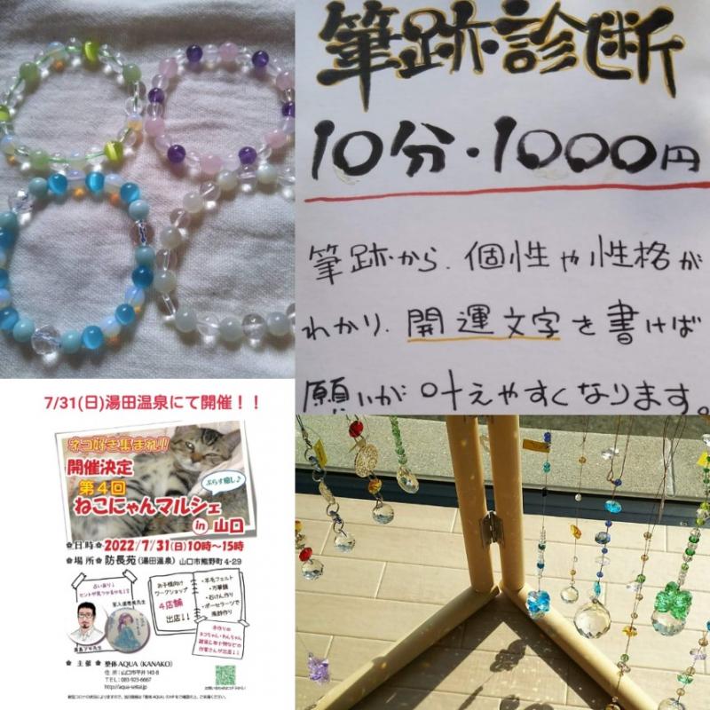 7/31(日)開催!!☆ねこにゃんマルシェ+癒し☆in山口~出展者様ご紹介『やっちゃん』さん~筆跡診断♪ 083-923-6667 〒753-0831 山口県山口市平井143-8 レセントα102号室 10:00〜18:00(最終受付時間)