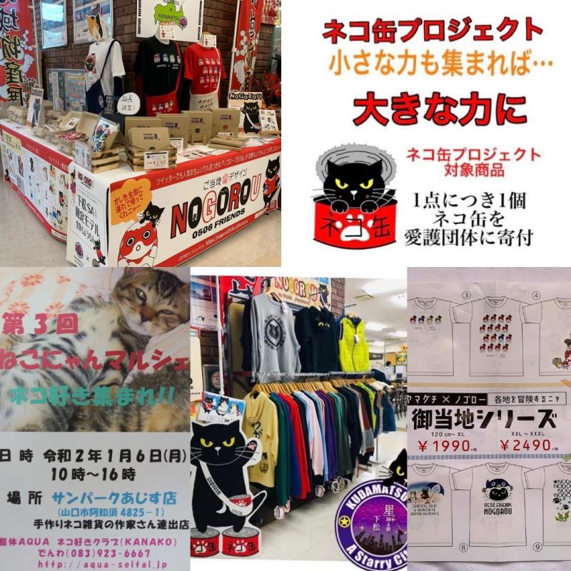 1/6(月)☆第3回ねこにゃんマルシェin山口☆~出店者紹介『ノゴロ―0560』さん/サンパークあじす店にて~山口市整体アクア主催 083-923-6667 〒753-0831 山口県山口市平井143-8 レセントα102号室 10:00〜18:00(最終受付時間)