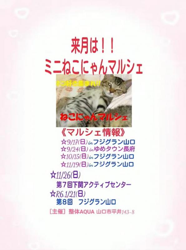ありがとうございました!!『キッズ&ベビーマルシェ』inフジグラン山口~山口市整体アクア主催 083-923-6667 〒753-0831 山口県山口市平井143-8 レセントα102号室 10:00〜18:00(最終受付時間)