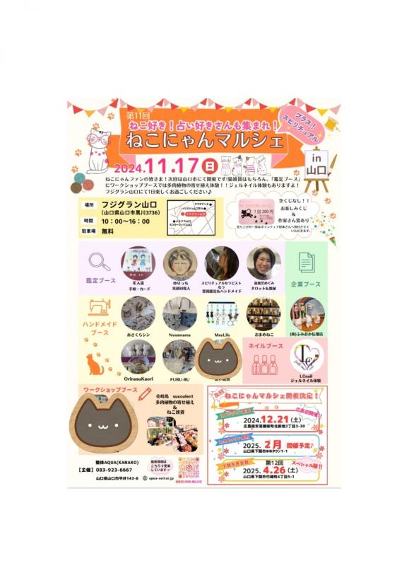 11/17(日)開催!!☆ねこにゃんマルシェ☆inフジグラン山口~出展者様『ふみおか仏壇店』さん♪~ペットのおくやみグッズ他 083-923-6667 〒753-0831 山口県山口市平井143-8 レセントα102号室 10:00〜18:00(最終受付時間)