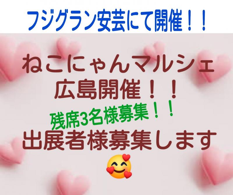 6/22(日)開催決定!!出展者様募集~ねこにゃんマルシェin広島~整体AQUA主催 083-923-6667 〒753-0831 山口県山口市平井143-8 レセントα102号室 10:00〜18:00(最終受付時間)