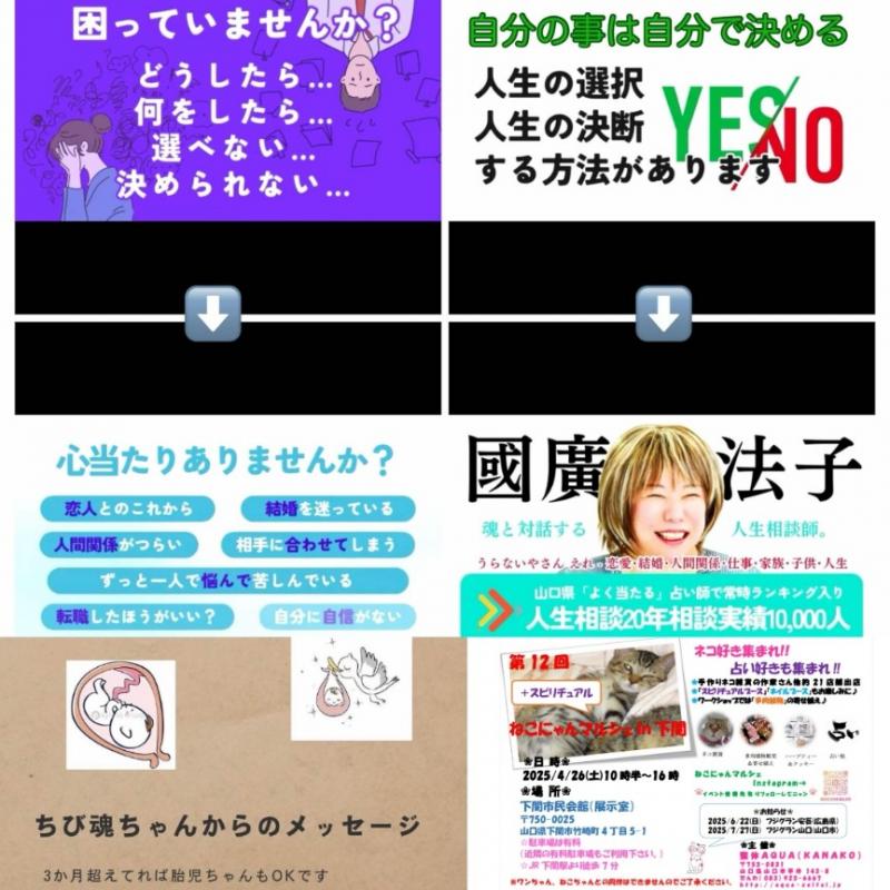 4/26(土)下関市民会館にて開催!!☆ねこにゃんマルシェin下関☆出展者様ご紹介~鑑定ブースあり 083-923-6667 〒753-0831 山口県山口市平井143-8 レセントα102号室 10:00〜18:00(最終受付時間)
