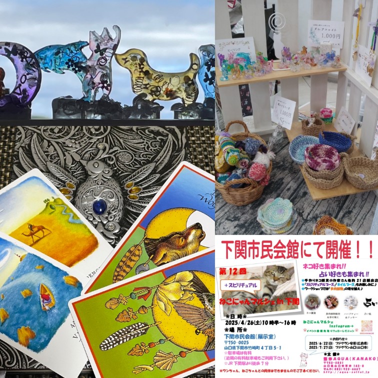 4/26(土)下関市民会館にて開催!!☆ねこにゃんマルシェin下関☆出展者様ご紹介~鑑定ブースもあり♪ 083-923-6667 〒753-0831 山口県山口市平井143-8 レセントα102号室 10:00〜18:00(最終受付時間)