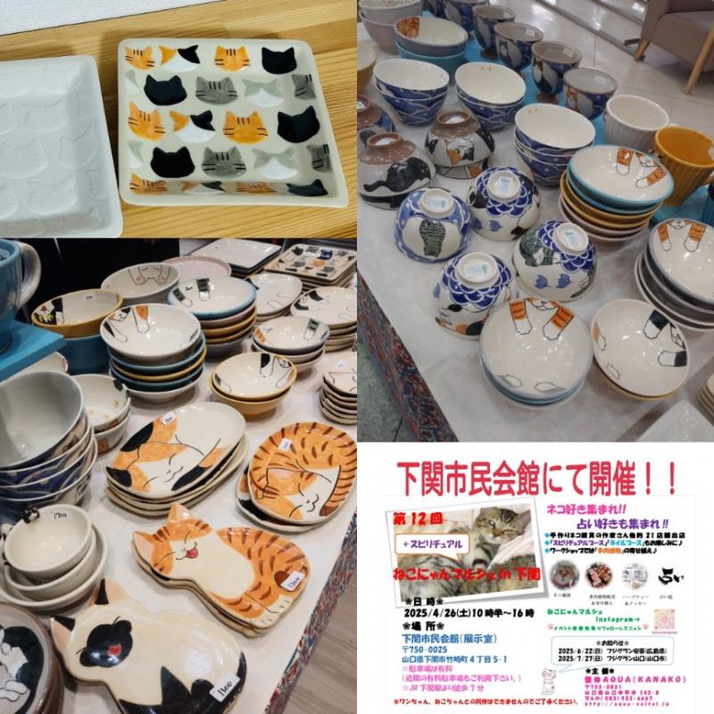 4/26(土)下関市民会館にて開催!!☆ねこにゃんマルシェin下関☆出展者様ご紹介~ねこ柄の陶器も見に来てね♪ 083-923-6667 〒753-0831 山口県山口市平井143-8 レセントα102号室 10:00〜18:00(最終受付時間)