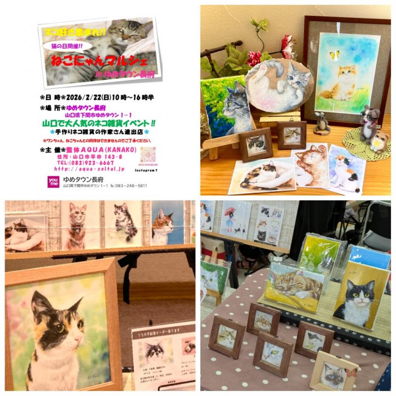 2026猫の日イベント♪〜ねこにゃんマルシェinゆめタウン長府〜山口市整体AQUA主催 083-923-6667 〒753-0831 山口県山口市平井143-8 レセントα102号室 10:00〜18:00(最終受付時間)