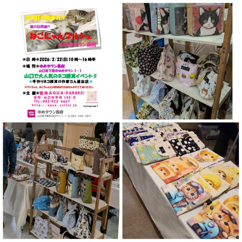 R8.2/22(日)明日は「猫の日」〜ねこにゃんマルシェinゆめタウン長府 083-923-6667 〒753-0831 山口県山口市平井143-8 レセントα102号室 10:00〜18:00(最終受付時間)